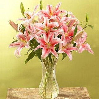 花材: 粉色多头香水百合9支