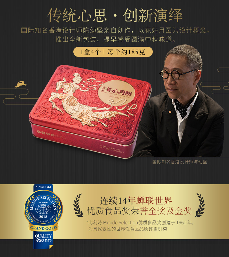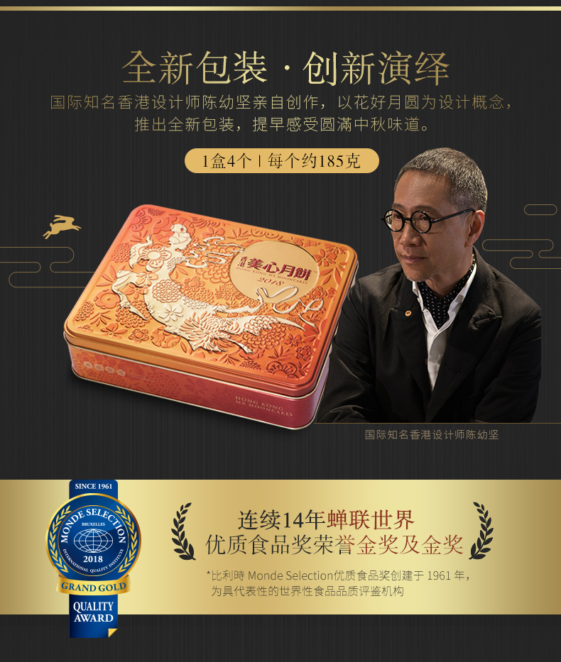 • 香港美心月饼礼盒 双黄白莲蓉月饼礼盒740g(仅送中国)