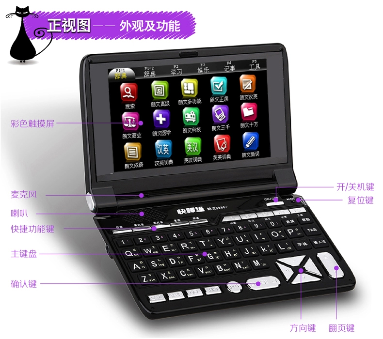 附加功能: 支持屏幕手写 支持扩展存储卡 真人发音 支持播放MP3音频 支持播放MP4视频 支持电子书阅读