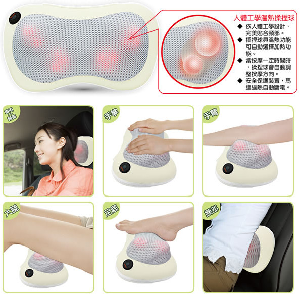 ◆ 多功能用途:可适用於居家、办公室及轿车,随时随地、无时无刻都可轻鬆享受按摩的乐趣。