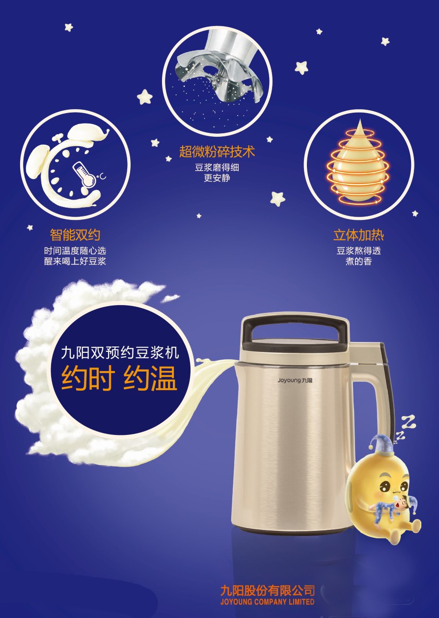 九阳DJ13M-D980SG豆浆机,可预约时间&温度,让您每天多睡一小时,起床就可喝上适温的美味豆浆。这也是2016年美国最新款豆浆机,110V-120V北美标准电压,美国直接插电使用!