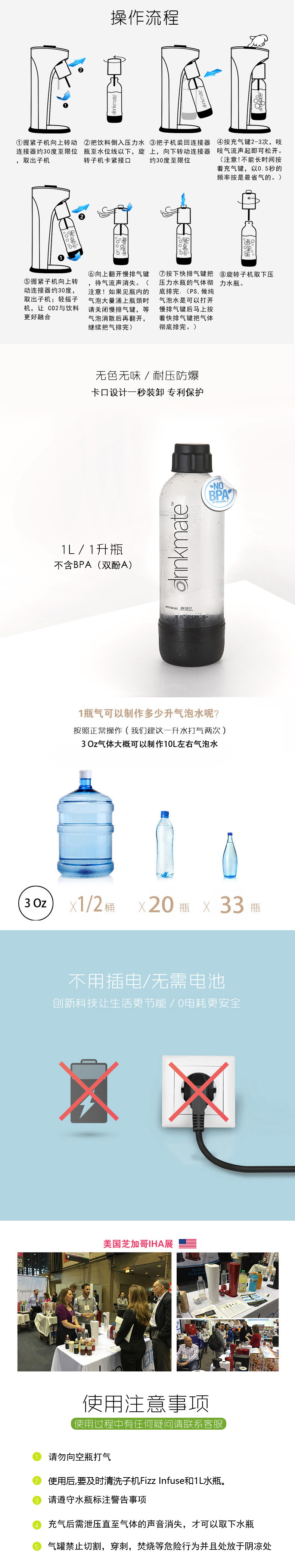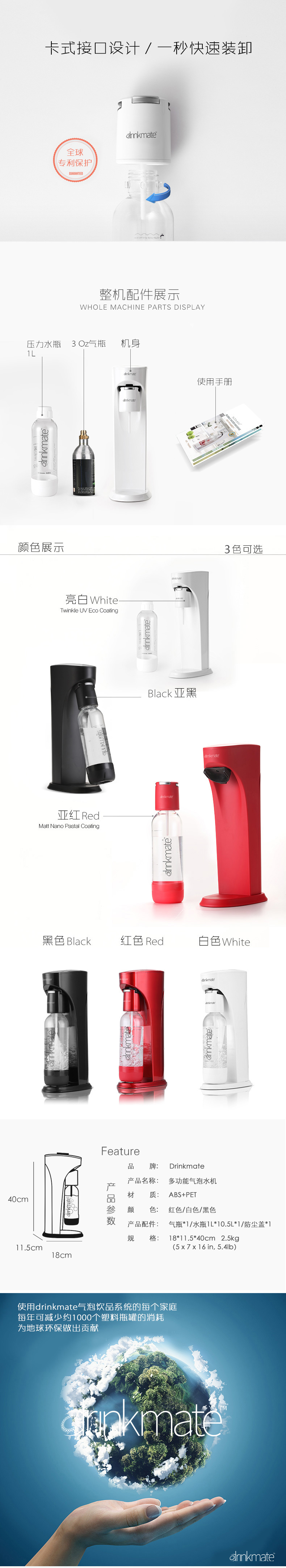 • DrinkMate家用气泡水机DIY饮料果汁酒水香槟