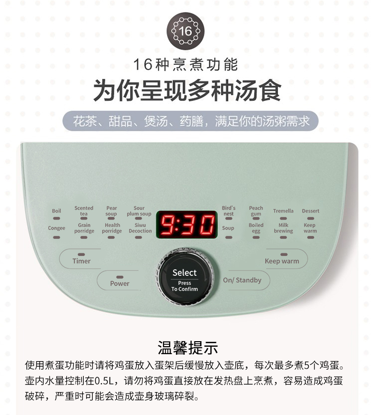 北鼎/Buydeem 多功能养生壶K2693 全自动炖煮壶 小型燕窝炖盅 玻璃加厚