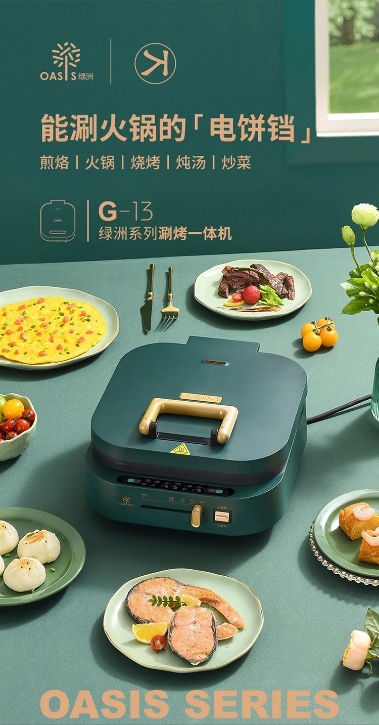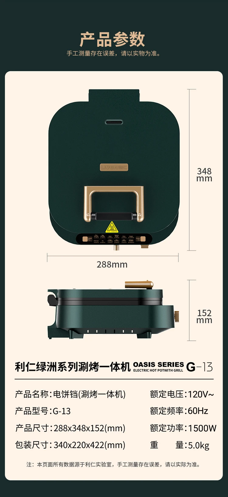 利仁(Liven)电饼铛家用加深加大电饼档大号涮烤一体锅多功能电火锅4L G-13 电炒锅电饼锅