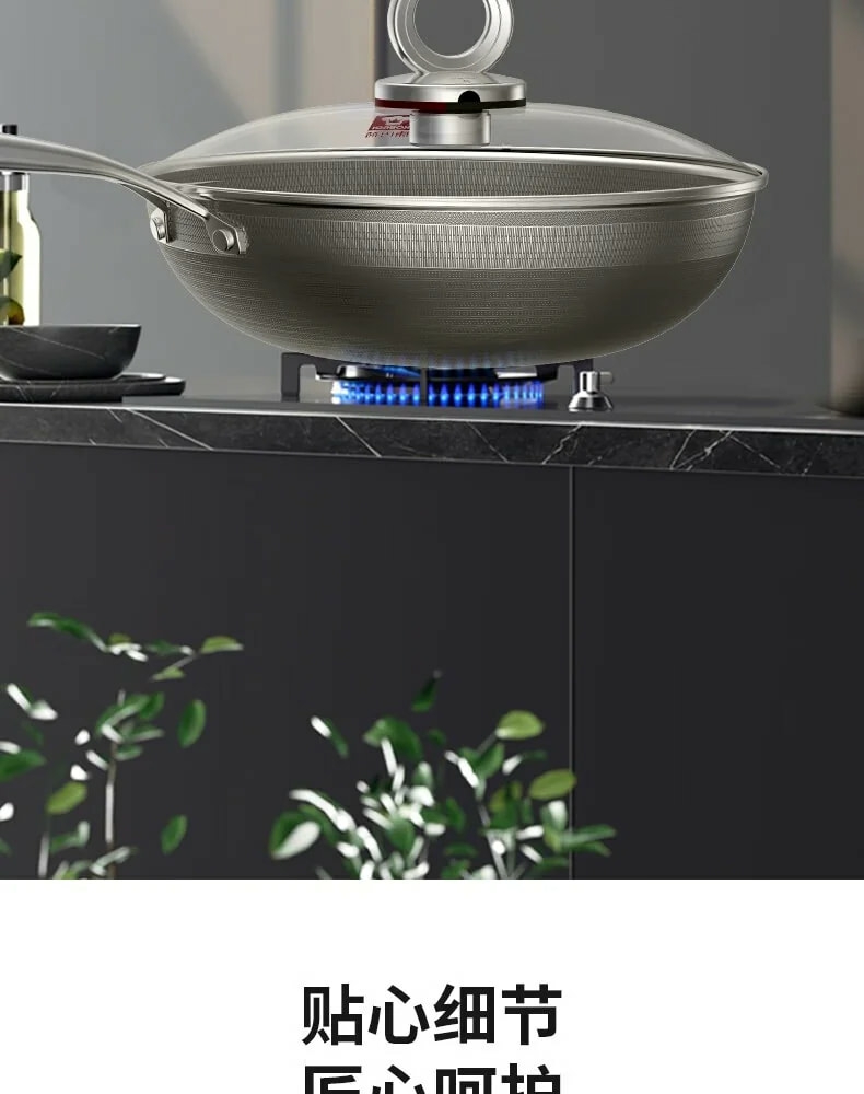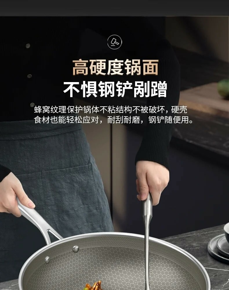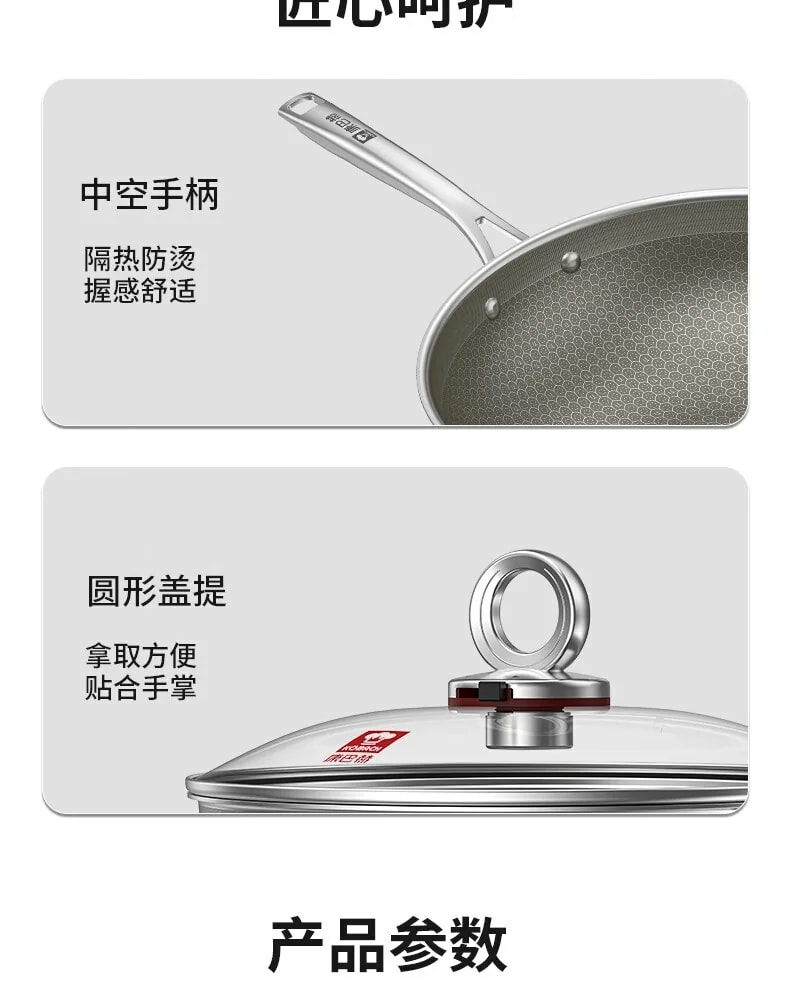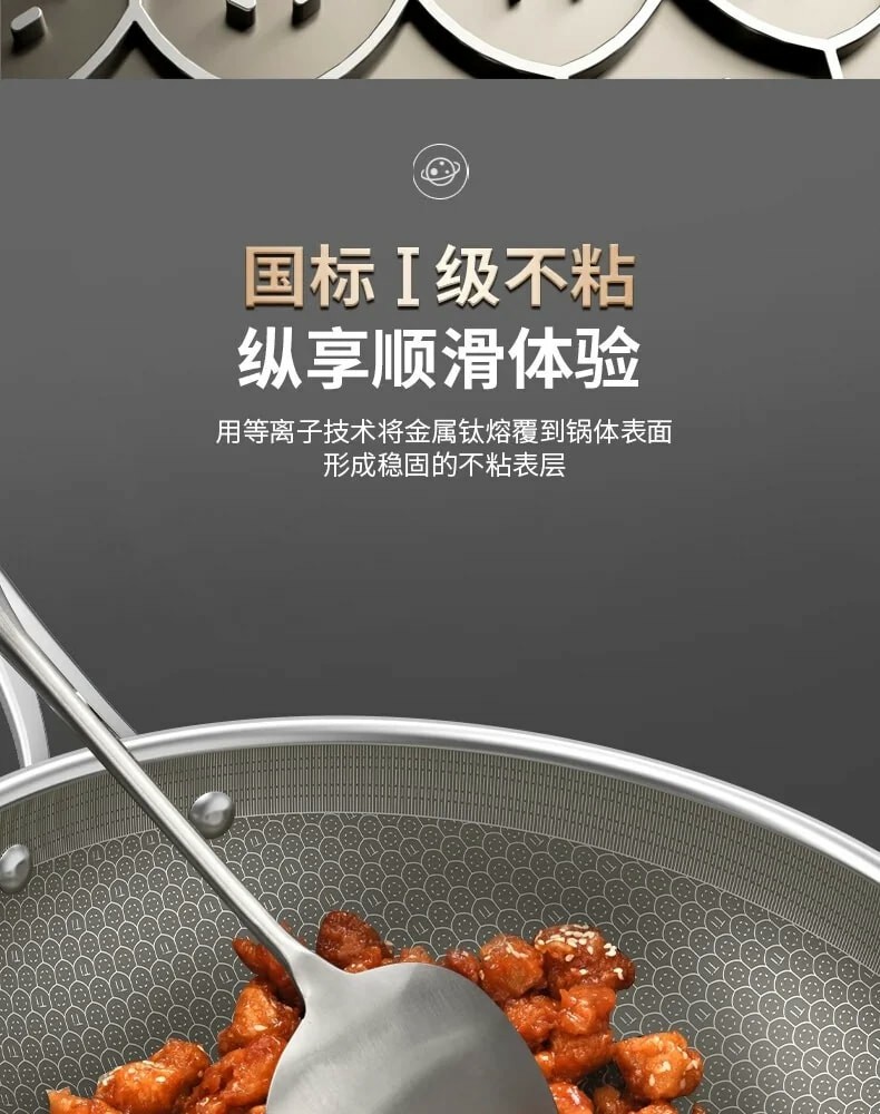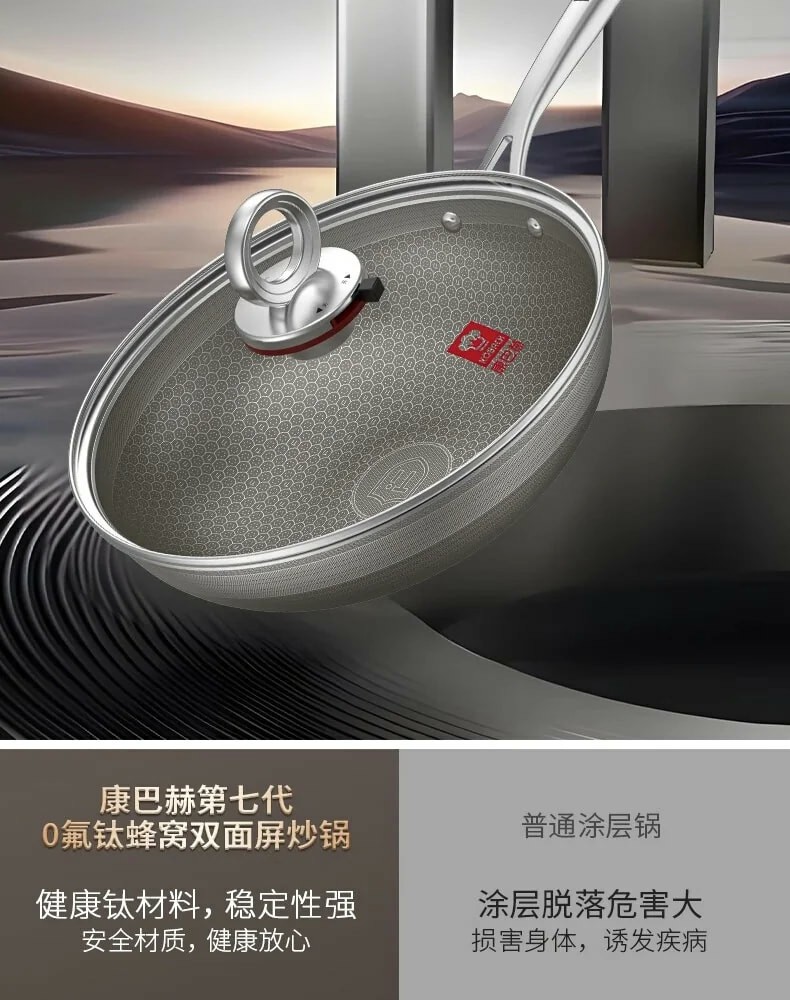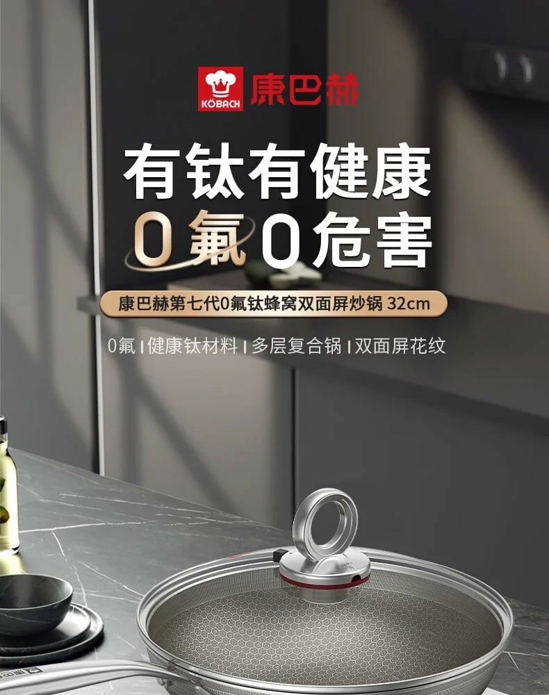 康巴赫第七代真钛蜂窝锅家用炒锅不锈钢不粘锅炒菜锅 32CM