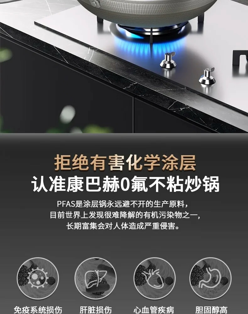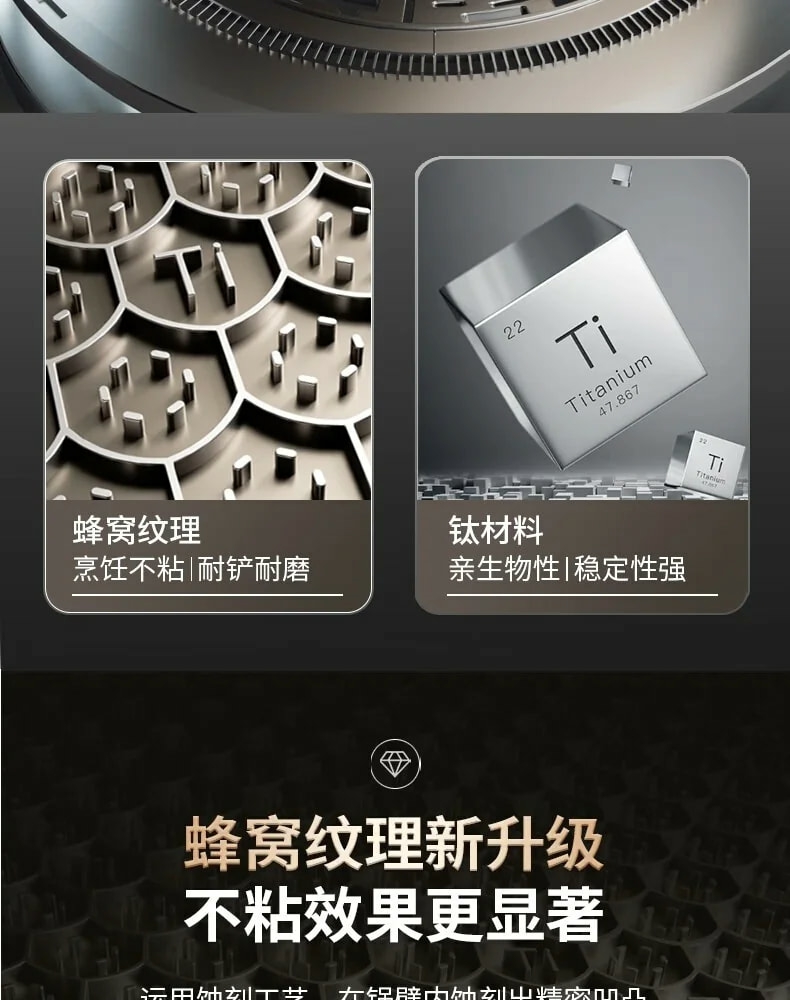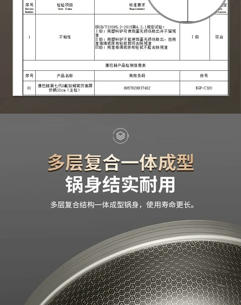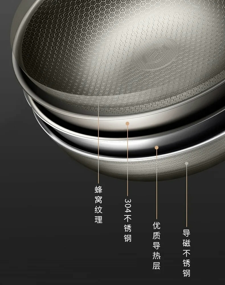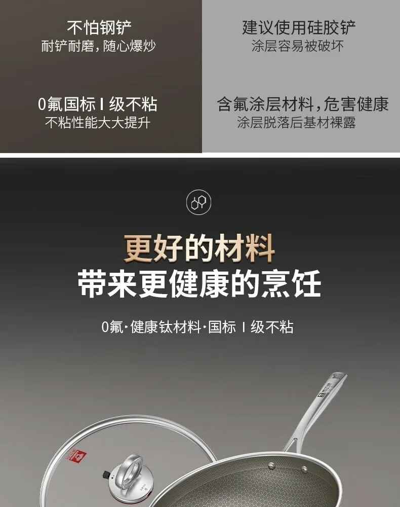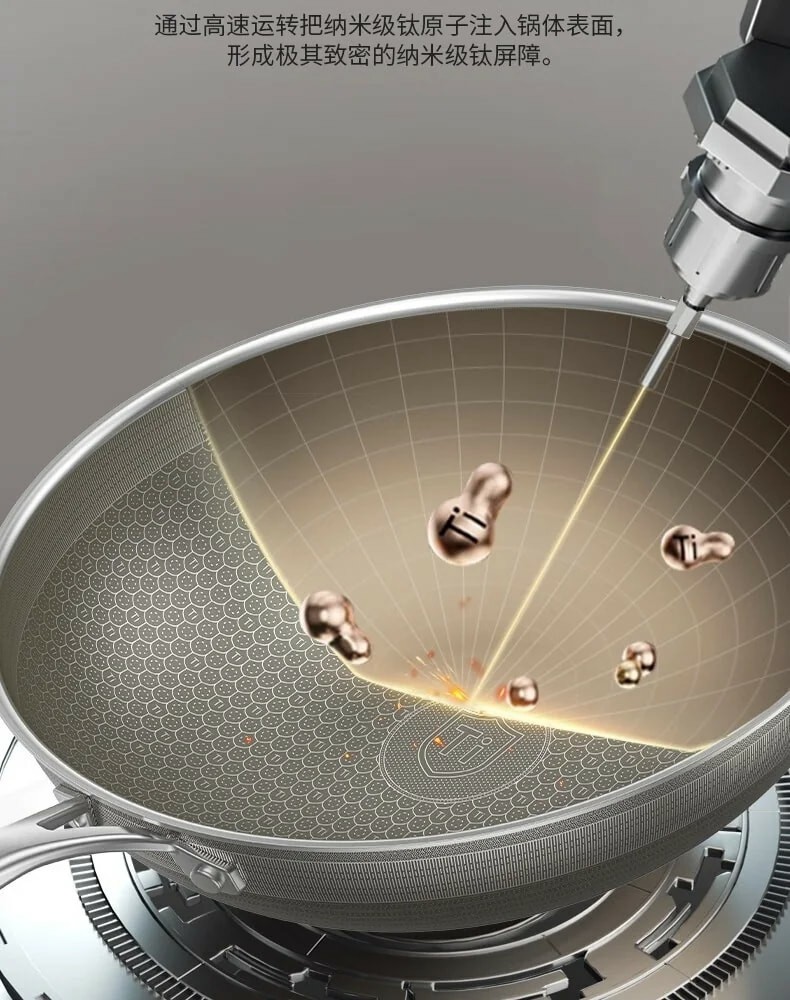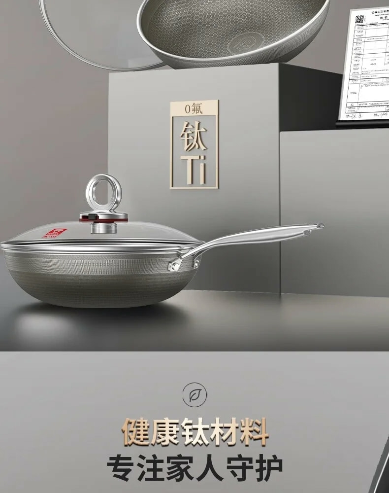 康巴赫第七代真钛蜂窝锅家用炒锅不锈钢不粘锅炒菜锅 32CM
