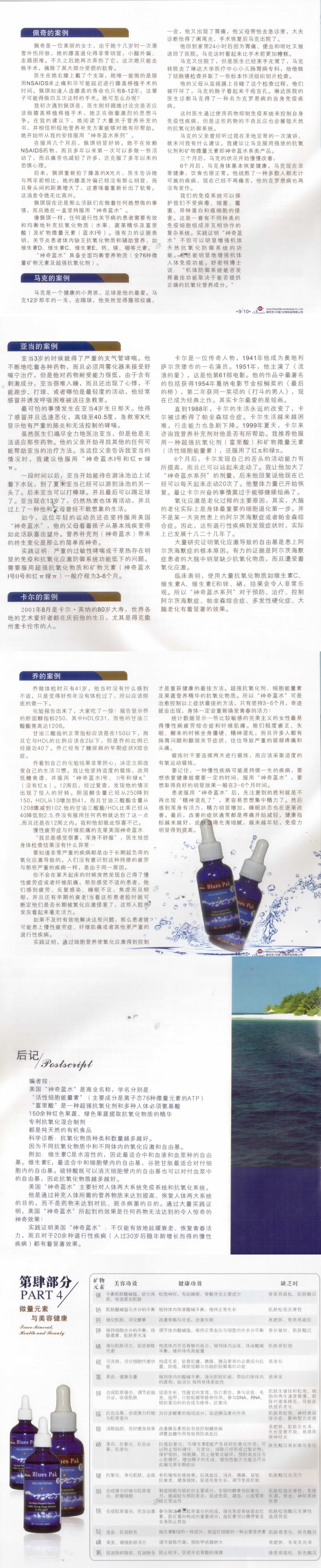 美国活性细胞能量液是目前世界上独一无二的、专为细胞提供营养和能量的一款天然活性产品,富含 72 种活性元素(带正电荷和负电荷),可有效修护细胞,增强细胞活性,有效提高细胞抗病、 防病能力;对全身健康都有十分有效的帮助。 产品在世界上 60 多个国家畅销,被患者称为“神奇蓝水”。